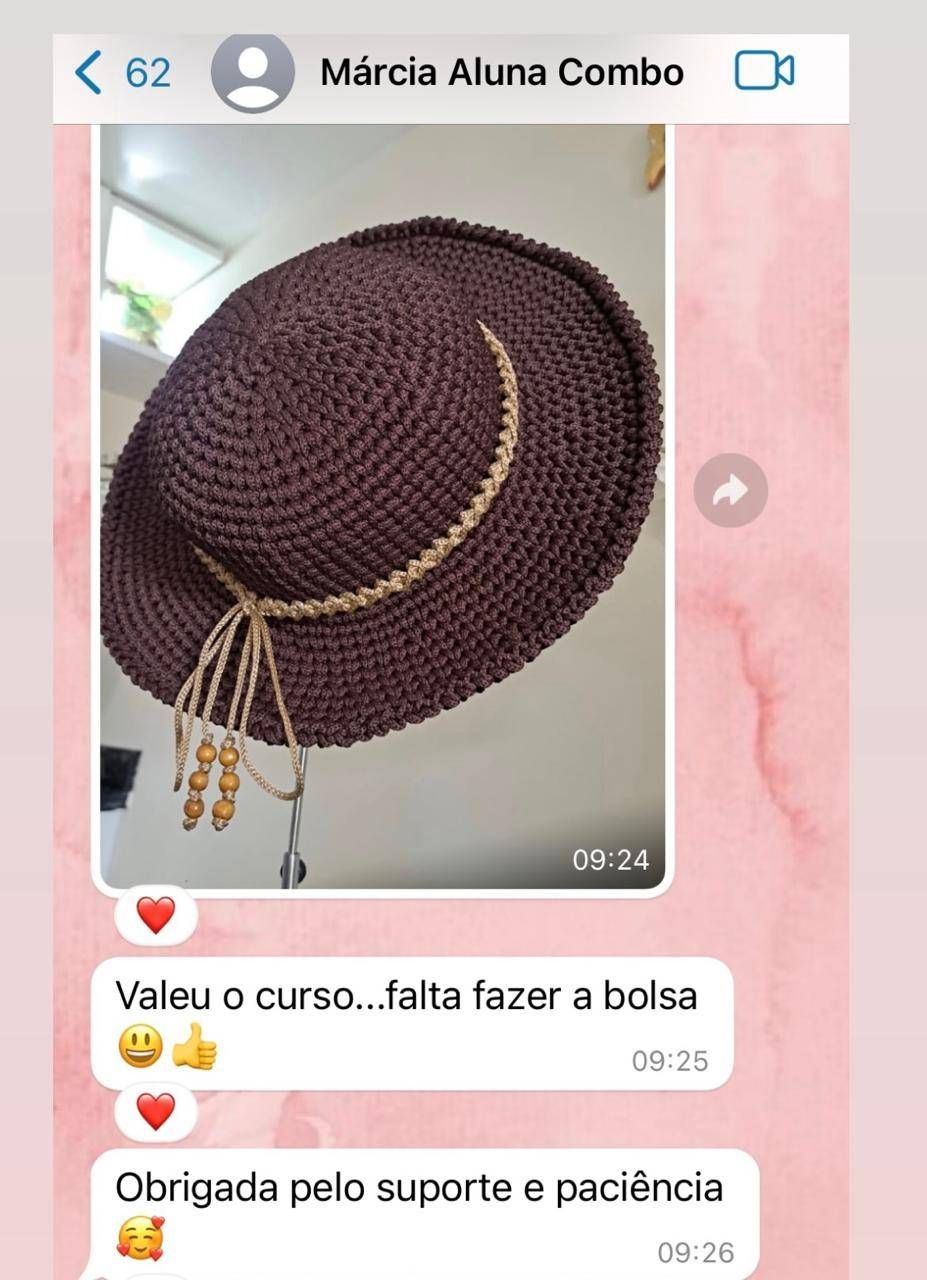 Aprenda 5 modelos de bolsas incríveis sucesso no meu ateliê + 1 chapéu super estiloso com acesso vitalício, videoaulas detalhadas passo a passo e suporte completo para tirar todas as suas dúvidas.