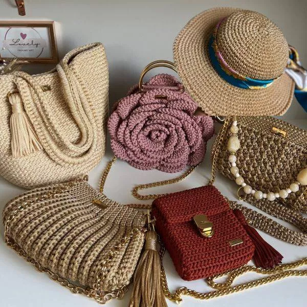 Combo Premium: Crochê de Luxo - 5 Bolsas + 1 Chapéu